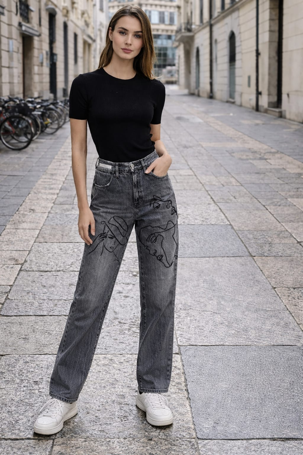 Con diferentes cortes de vestibilidad, Super Slimfit, Slim, Grunge, Swing, Active, Rectos, Pata de elefante, anchos, pitillos, etc.